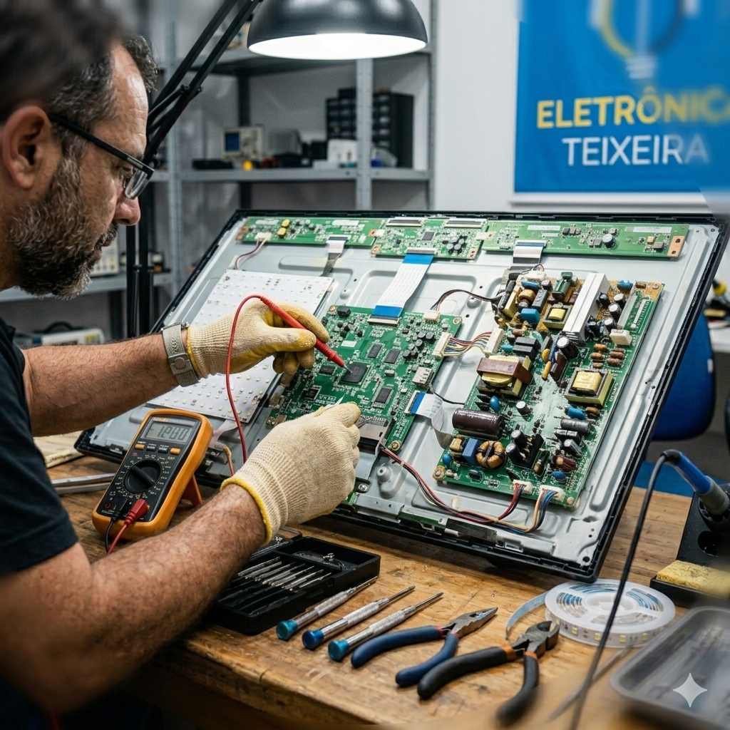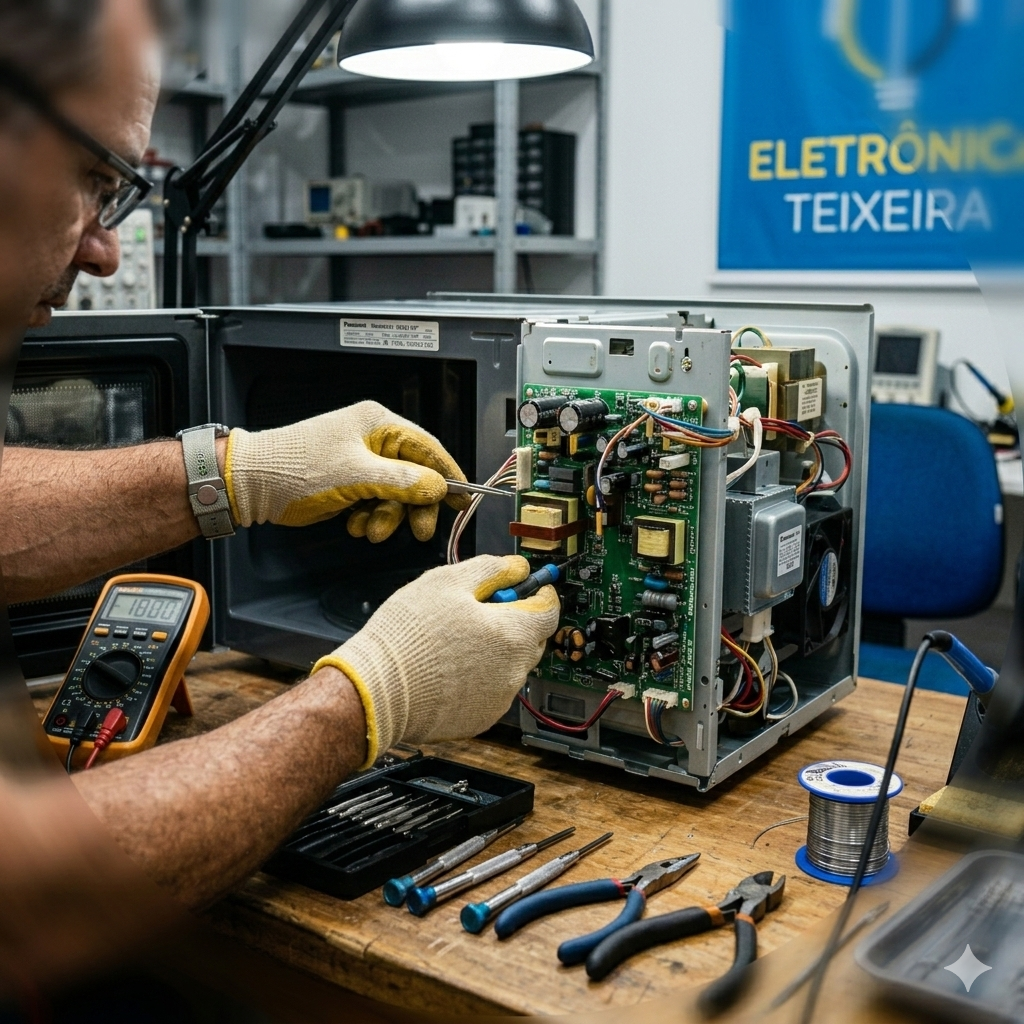 Manutenção especializada de alta precisão para microondas, televisões e carregadores de carro, com diagnósticos rápidos, peças originais e garantia total de qualidade para os seus aparelhos eletrônicos.